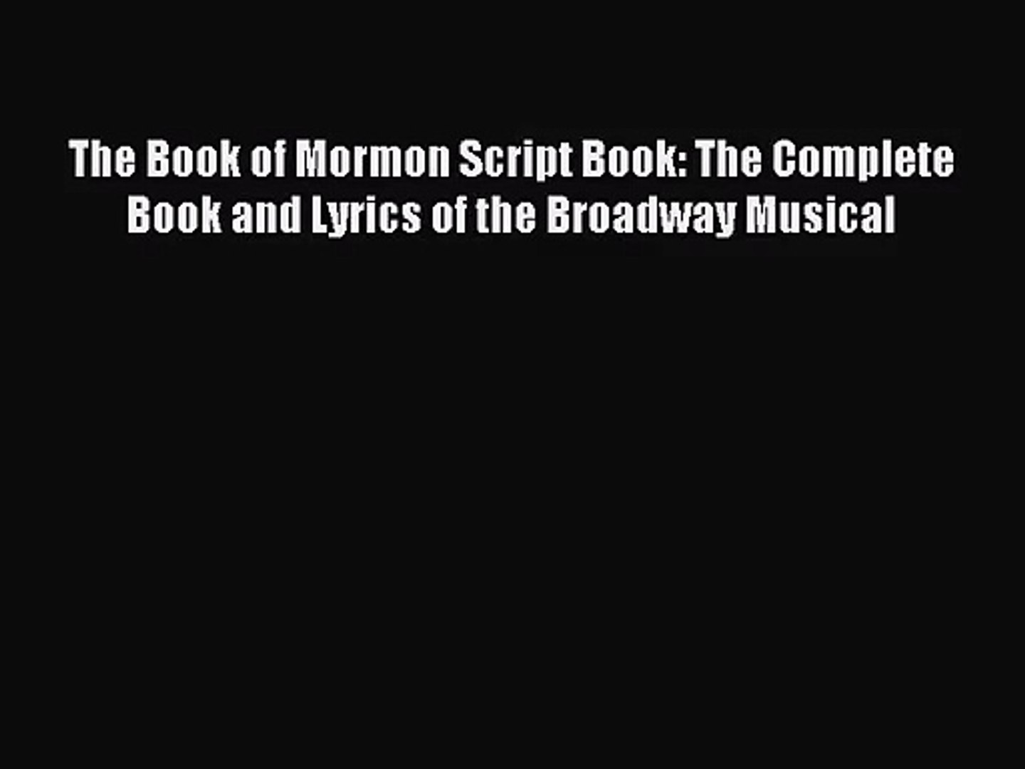 Pdf Download The Book Of Mormon Script Book The Complete Book And Lyrics Of The Broadway Video Dailymotion